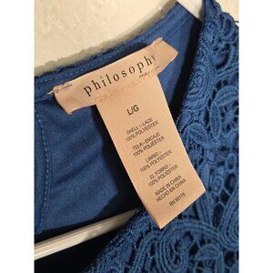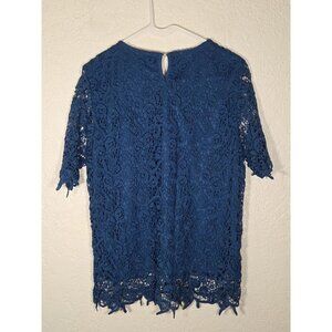 Philosophy Blue Lace Lined Crew Neck Short Sleeve Blouse Top sz L
