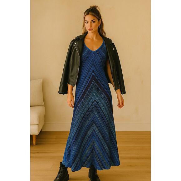 Philosophy dress, blue ombre dress, crochet knit maxi, bodycon resort dress, strappy back maxi, boho coastal chic, chevron pattern, vacation outfit, knit summer dress, cache dress, grunge, whimsigoth, dark fairycore, layering piece