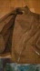 Elegant brown suede jacket with asymmetrical zipper. Features snap buttons and zippered pockets. Perfect for layering.