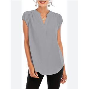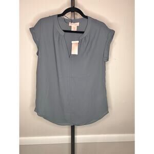 NWT Philosophy Cap Sleeve Split V Neck Work Office Blouse Top Gray Women's Small