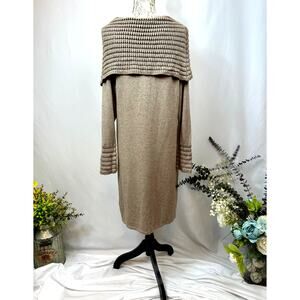 Philosophy Cowl Neck Crochet Overlay with Matching Cuffs Dress Taupe XL