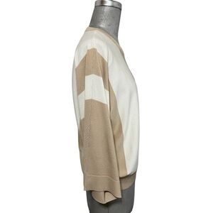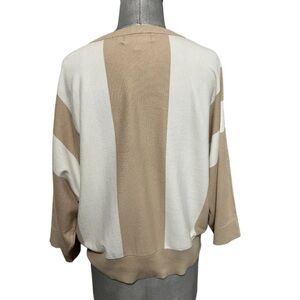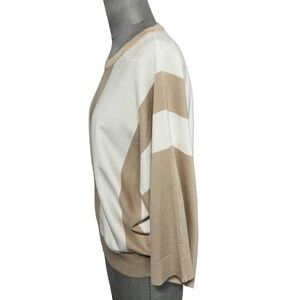 Philosophy Crew Neck Kimono Sleeve Vertical Striped Ivory & Tan Sweater Size XL