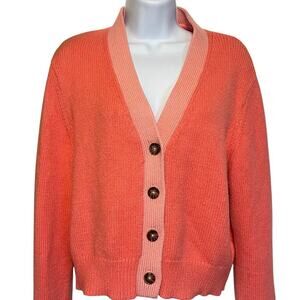 Philosophy Cropped Knit Cardigan Sweater XL Button Front Coral Pink Preppy