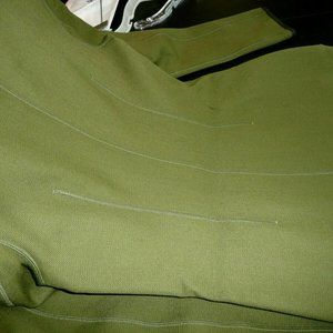 A new, never before worn long coat by Philosophy, Di Alberta Ferretti. This long Wool Coat comes in a Olive Green outer that is a cotton wool blend with a Brown wool interior. Snap closure, open contrasting collar in the USA Size 4. This designer coat was made in Italy. The coat is new, has never been worn, however, we no longer have the original tags, but if we find them, they got seperated from the coat, we will add it with the coat. This coat has double breasted hidden snap closures, open contrasting collar with two interior ties that you tie around your waist prior to snapping the coat closed. The sleeves can be cuffed up, as shown in the photos for contrast or worn straight. There are two side pockets with faux pocket flaps. Beautiful coat! Hard to find, especially new, never worn condition. CONDITION: New Coat without original tags, never worn, clean and free of defects. Please see photo #13, there is knick on the fabric, not a hole, no major thing, came this way from manufacturer as this item is wool and abnormalities are to be expected. Unique ID serial number is: C024821. NOTE: We post measurements with the garment laying flat, zippered or buttoned and not stretched. Please double check the measurements ensure a proper fit. Manufacturer size: USA size 4 - Dry Clean Only across shoulders: 17" across armpits: 18" across waist: 15.5" across hip area: 18.5" top to bottom: 39" sleeve: 24.5" Please see all photos and ask questions. Smoke and Pet Free Environment.