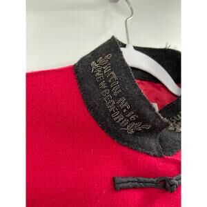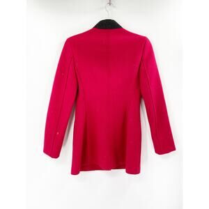 Black loop toggle closure bars down the front and a beaded embellished mandarin band collar stands out on this bold solid red wool coat from Philosophy Di Alberta Ferretti.
