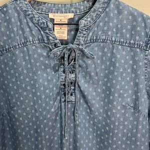 Philosophy Dress 100% Tencel Lace Up Raindrop Print Denim Jean Mini Chambray