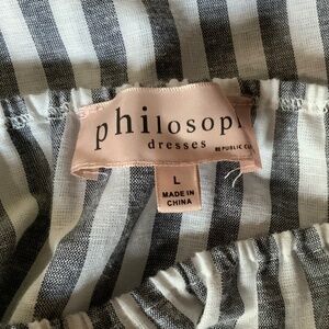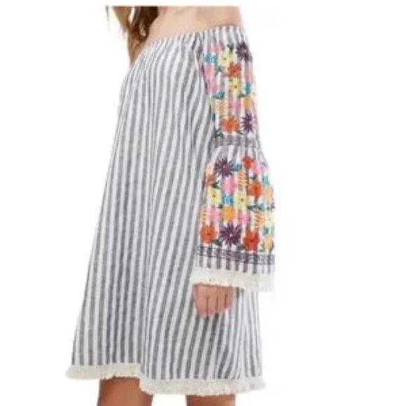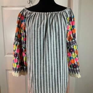 Philosophy Embroidered Linen Blend Boho Peasant Stripe Dress Size Large