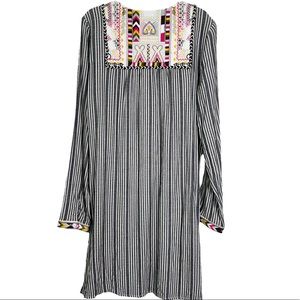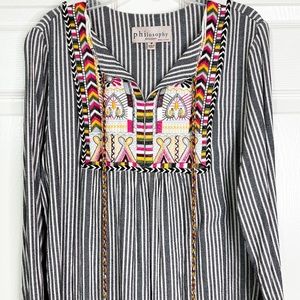 Philosophy Embroidered Tasseled Striped Tunic Bohemian Shirt Dress Women’s Sz M