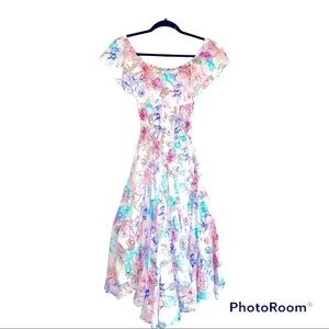 Philosophy FLORAL FLUFFY DRESS ruffles cold shoulder picnic poof brunch