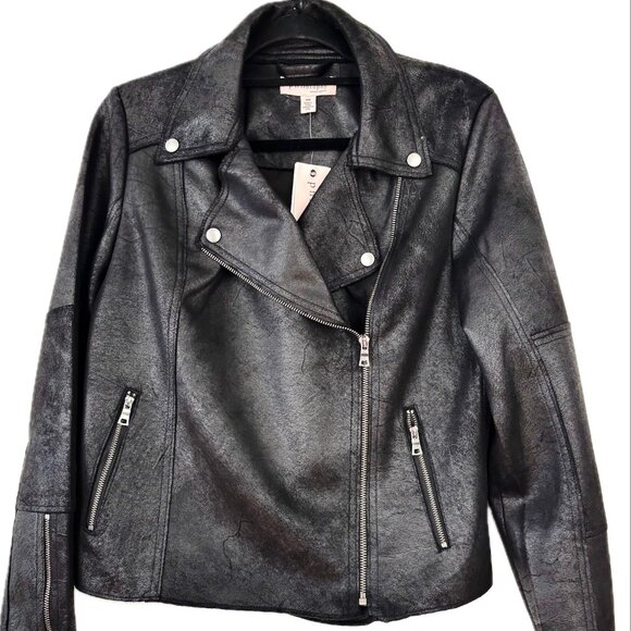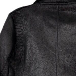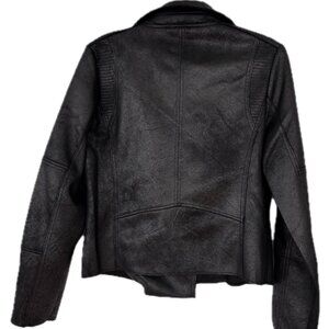 Philosophy Faux Suede Leather Moto Jacket Distressed Black Womens SZ M NWT