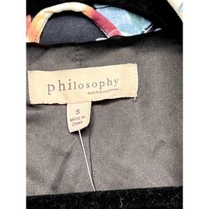 Designed for the trendsetter, the size Small ensures a sleek fit, allowing you to showcase your unique style confidently. Whether hitting the city streets or adding flair to your evening ensemble, this Philosophy jacket epitomizes versatile and on-trend fashion.