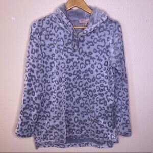 Philosophy Gray Leopard Print Hoodie Medium. Preowned and in great condition. Has pockets on front, drawstring for good. Very soft and comfy. Slits on side and high hem in front then back.