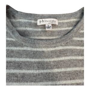 Philosophy Gray & White Striped 100% Cashmere Sweater Women's Large