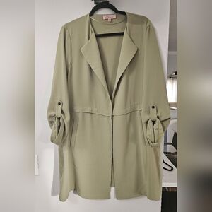 Philosophy Green Duster Trench Coat with Wide Collar and Adjustable Sleeves 1X