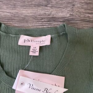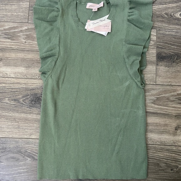 Philosophy Green Ruffled Ribbed Tank Top