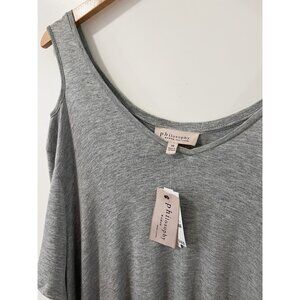 Philosophy Heather Gray Cold Shoulder Asymmetrical Relaxed Blouse Size 3X