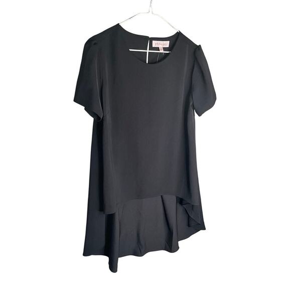 Philosophy High Low Top Short Sleeve Round Neck Pleated Back Black Womens Medium