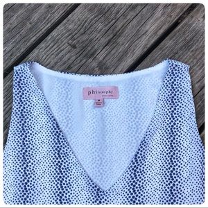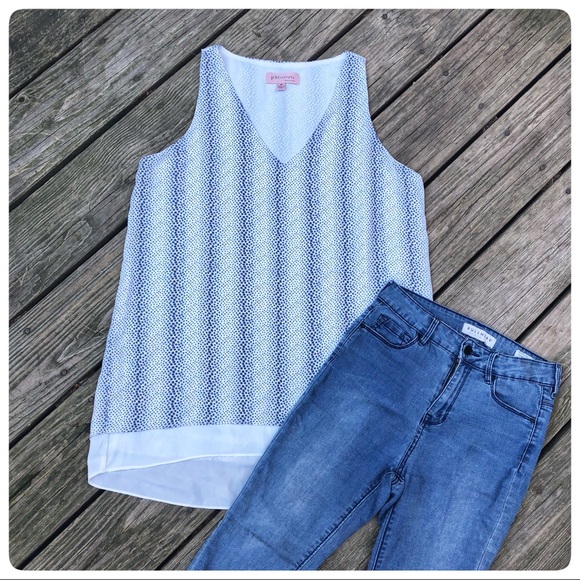 Gorgeous high-low tank with sheer inlay. Very lightweight and very good condition. The dots look to be gray and gray/blue.