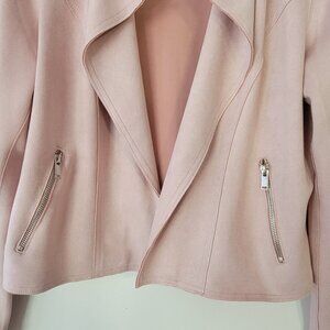 Philosophy Jacket Faux Suede Open Front Baby Pink Moto Womens Size Large Casual