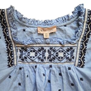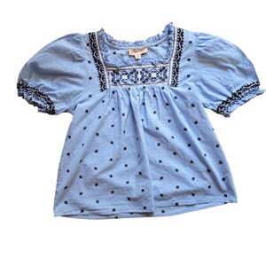 Philosophy Light Blue Embroidered Square Neck Blouse Cottage Peasant ~ Medium