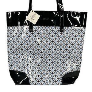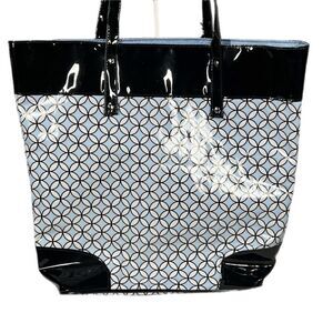 Philosophy Light Blue, White & Black Patent Leather Tote Bag New