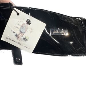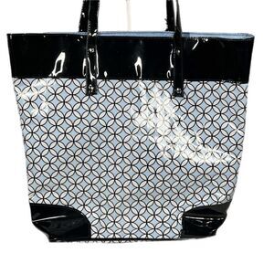 Philosophy Light Blue, White & Black Patent Leather Tote Bag New