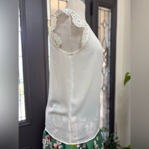 Philosophy Light Ivory Lace Cap Sleeve Pleated Neckline Blouse | Size M