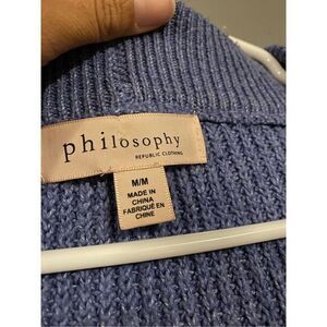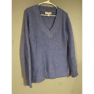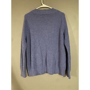 Philosophy Light Blue Purple Pointelle Sleeve V-Neck Sweater Size Medium