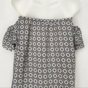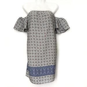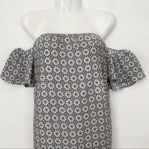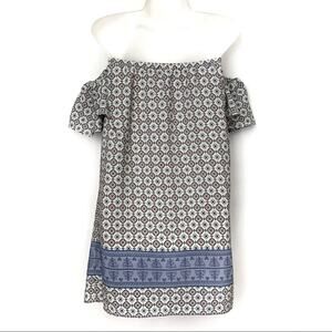 Philosophy Medallion Border Print Off the Shoulder Lined Dress