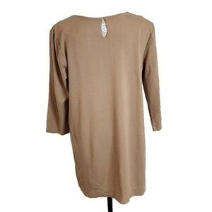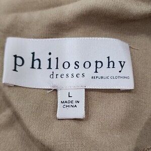 Philosophy Mini Dress Tan 3/4 Sleeves Leather Trimmed Pockets Women's Large