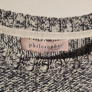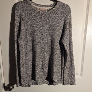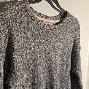 Elegant monochrome knit with a cozy crew neck. Ideal for versatile styling. Size tag missing, measurements in photos. Looks to be a size large