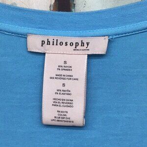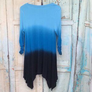 Philosophy Ombre Blue & Black Dip Dye Asymmetrical Hem Tunic Top Ruched Sleeves