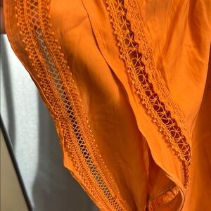 This vibrant orange blouse from Philosophy showcases a relaxed smocked design with a scoop neckline and short puffed sleeves. The lightweight fabric offers a soft drape, making it a comfortable and stylish choice for any casual outing.