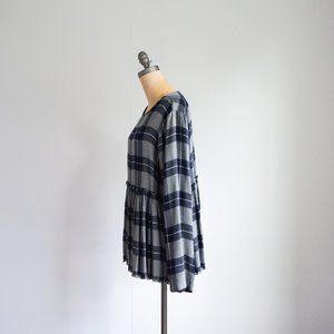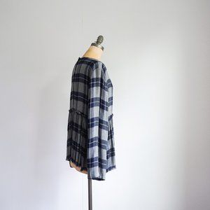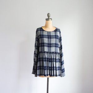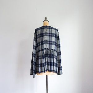 Philosophy Plaid Blue and Grey Top with Pleats - Size - L