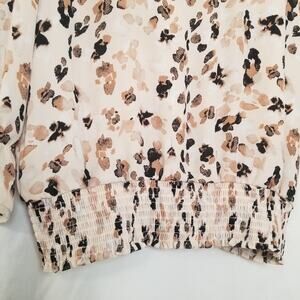 Philosophy Pullover V-Neck Animal Print Top Smocked At Hem Ruffled Sleeve Size M