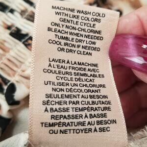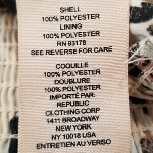 Philosophy Pullover Animal Print Top; Size M; Material - Shell - 100% Polyester, Lining 100% Polyester; Care - Machine Wash Cold Gentle; Made in China; Color Beige, Brown, & Black; Pullover, V-neck, 3/4 Ruffle Sleeve, 3 1/4 inch Smocking at hem, Pleat Center Back;