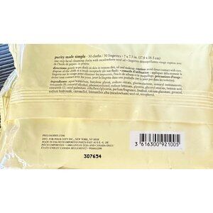 New! Philosophy Purity Made Simple One-Step Facial Cleansing Cloths 30 Cloths with meadowfoam seed oil.