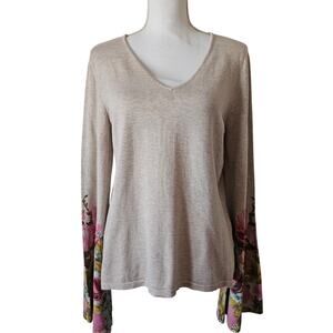 Philosophy Republic Clothing Beige Floral Bell Sleeve Knit Top Size Large