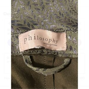 This Philosophy faux leather jacket in a striking green hue offers a sophisticated blend of classic tailoring and modern style. Crafted with a structured silhouette, it features notched lapels and a hip-length cut, making it a versatile addition to any wardrobe. Ideal for both professional and casual settings, this jacket exudes elegance and confidence.