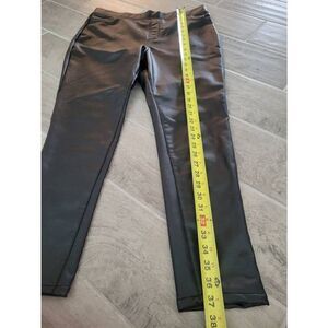 Philosophy Republic Clothing Faux leather black pants. Have a soft, light fleece like lining. Pants are in great condition however there are minor marks from the hangers on the waistband, please see photo. Not really noticable unless looking for them. Pull on style. Straight/skinny. Size large, approximate measurements in photos.