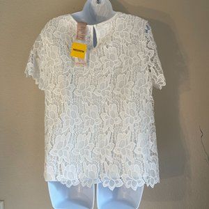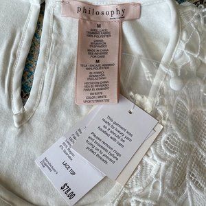 Philosophy Republic Crochet Lace Tee Scallop Hem NWT M