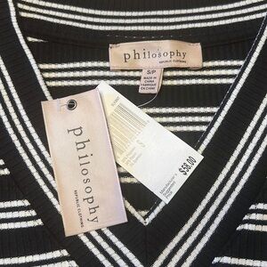 Philosophy Republic V Neck Striped Top Black and White Size Small NWT