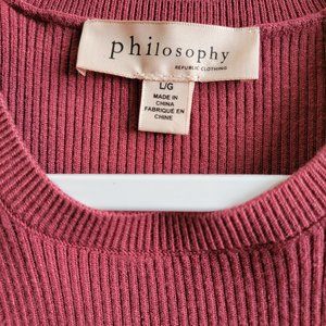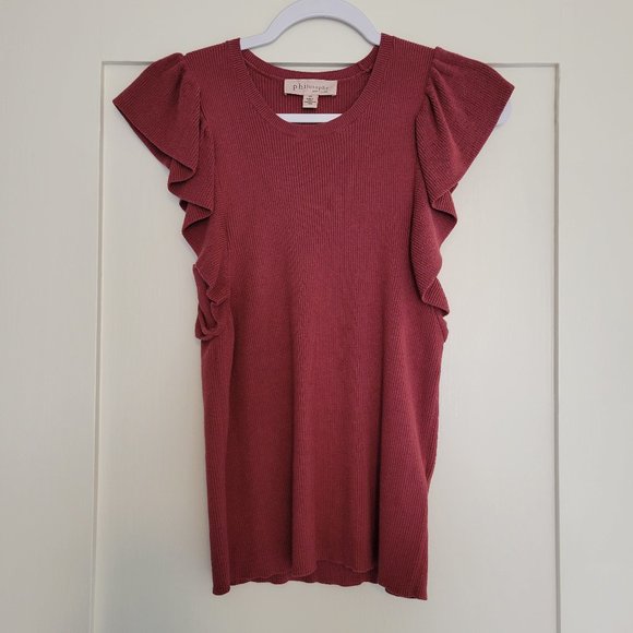 Excellent condition, size women's L, Philosophy brand in a muted red color. Thick tank top with ribbed texture and ruffle shoulder sleeve details.