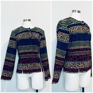 Philosophy Sag Harbor Animal Print Stripe Jacket Blazer Grandma Large