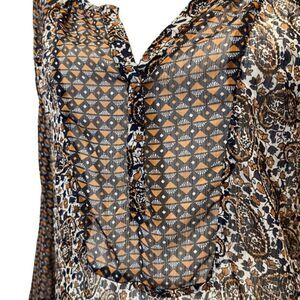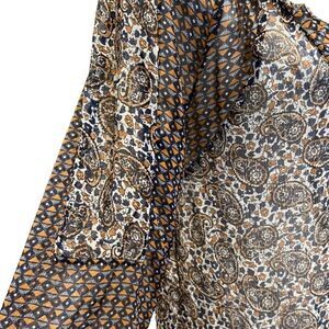 Philosophy Sheer Navy and Gold Tunic Button Front Placket and Paisley Size Large