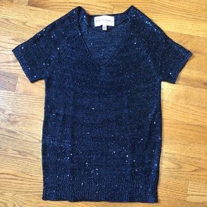 Philosophy Short Sleeve Sparkle Blue Sweater size Small