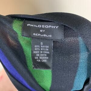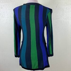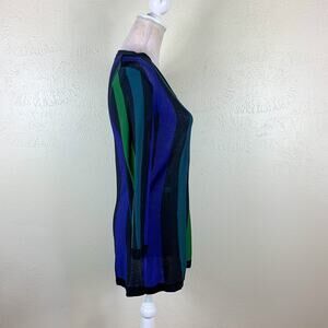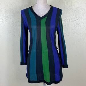 Philosophy Striped Knit Tunic Top Size S Blue Green Black V Neck Retro Y2K