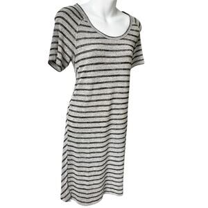 Philosophy Sweater Dress Size Small Relaxed Fit Stretchy Black Gray Stripe Cozy