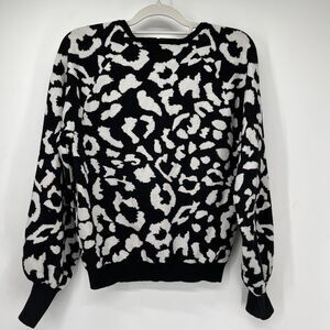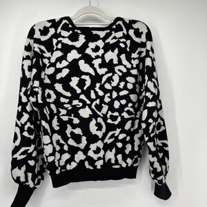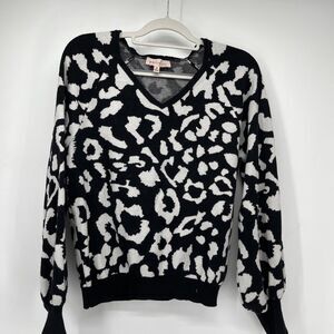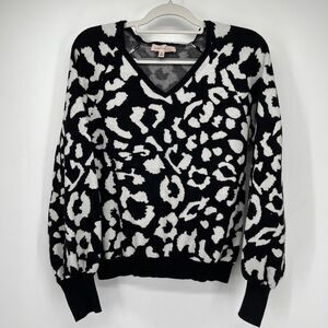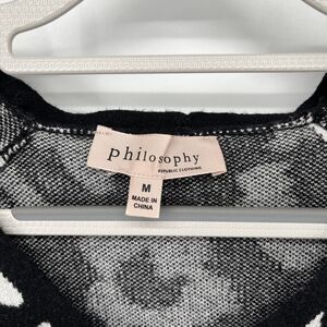 Philosophy Sweater Womens Medium Black White Ikat Animal Print V-Neck Pullover