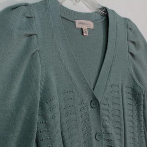 Philosophy Sweater Women's Small Blue/Green Long Sleeve Solid Cropped